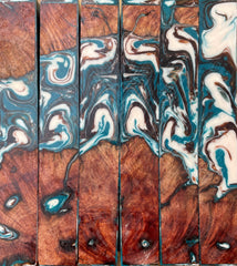 Hybrid blanks at Bullseye Turning Supply are made with stabilized hand-picked wood and Alumilite Clear Slow resin. Our resin colors are carefully designed and mixed by a member of our family business.