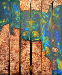 Hybrid blanks at Bullseye Turning Supply are made with stabilized hand-picked wood and Alumilite Clear Slow resin. Our resin colors are carefully designed and mixed by a member of our family business.